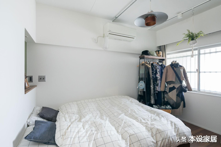 由于日式家居基本都有独立的衣帽间,所以卧室的布置都是极简到极致。 墙面和天花大面积的白色漆,搭配同色系的床品,简简单单,干干净净就很好! 对于衣物的选购,这位太太以基本款为主,而且价值不菲,洗净后整整齐齐地挂在衣柜里。 书房