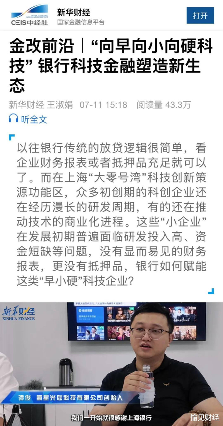 | 来源 | 上银微动态 【编者按】 从1986年响应“两小”勇闯金融改革新路诞生在街道的川南城市信用社,到1995年整合而立的上海城市合作银行,再到如今屹立浦江两岸、服务地方经济的重要金融力量,一代代上海银行人怀揣热忱、勇毅前行,在上海金融改革的浪潮中,“建基上海、立业中华”,写下了属于自己的时代答卷。 岁月流转,变的是日益壮大的规模与版图,不变的是“金融让生活更美好”的使命传承。 点滴用心,相伴成长。金融有温度,是心系小微企业的雪中送炭;金融有力量,是助推地方发展的坚实臂膀;金融有情怀,是与城市同频共振的不懈坚守。 回望卅载深耕路,上海银行循着“金融改革之花”的绽放轨迹,重拾共同记忆,共话初心使命,更将以过往为序,续写与时代同行、与城市共荣的新篇章。 上银30年 · 科技金融篇 “那年寒冬,上海银行敲响我们实验室的门” 2021年底,上海银行闵行支行根据日常“扫楼”成果总结出了高校成果转化清单,偶然间发现了一家从交大实验室走出来的卫星激光通信团队——穹窿科技,那时他们刚成立,连办公室都是临时借用的。闵行支行迅速抽调精干组建3人团队,连续2天开会为这家硬科技企业的未来把脉。和大多数0-1阶段的“早小硬”企业的困境相似,穹隆科技面临两道“坎”:一是技术价值很难被评估,二是长周期资金很难精准匹配。经过反复研讨,大家一致认为“要投!”。这家企业的价值不在当下营收,而在技术,也正是那时,他们第一次敲开与星海征途的合作之门。